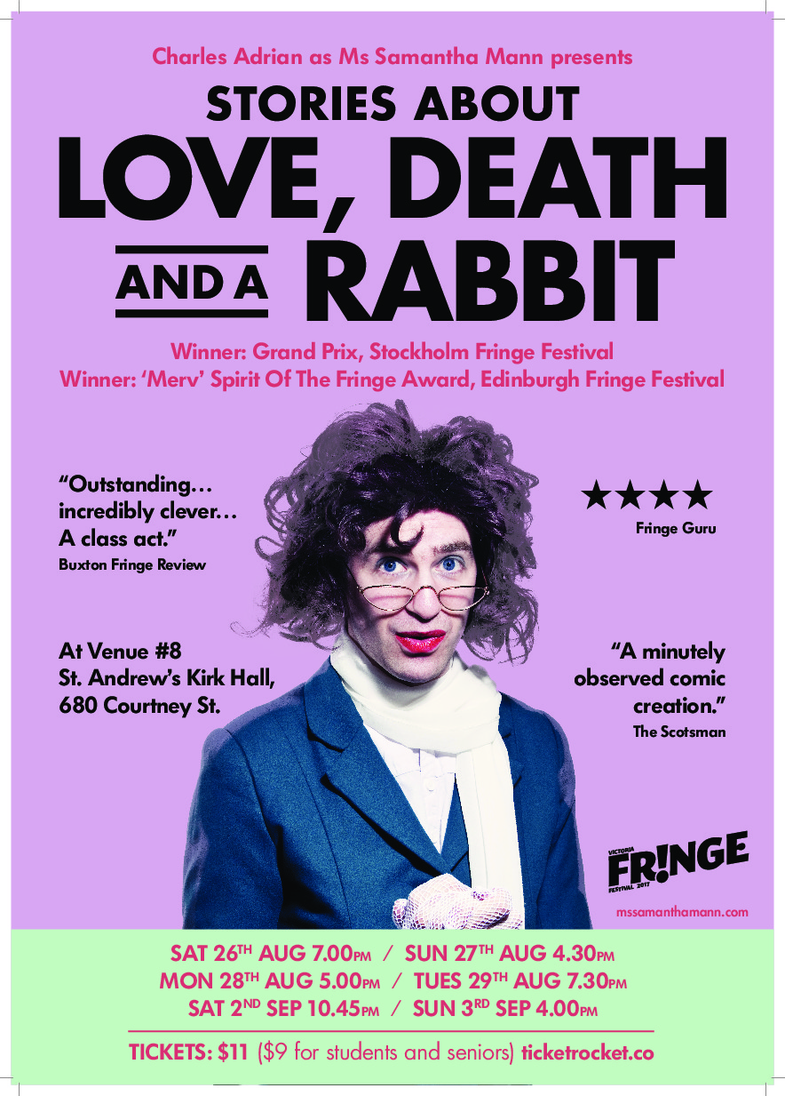 Stories About Love, Death & A Rabbit: Charles Adrian  (as Ms Samantha Mann) @ St. Andrews Presbyterian Church Aug 27 2017 - Dec 20th @ St. Andrews Presbyterian Church