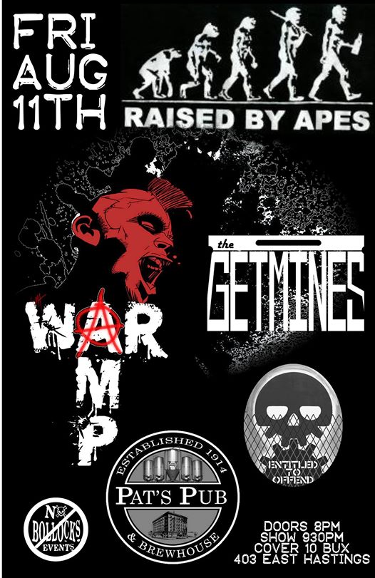 Raised By Apes, The Getmines, War Amp , Entitled to Offend @ Pat's Pub Aug 11 2017 - Feb 18th @ Pat's Pub