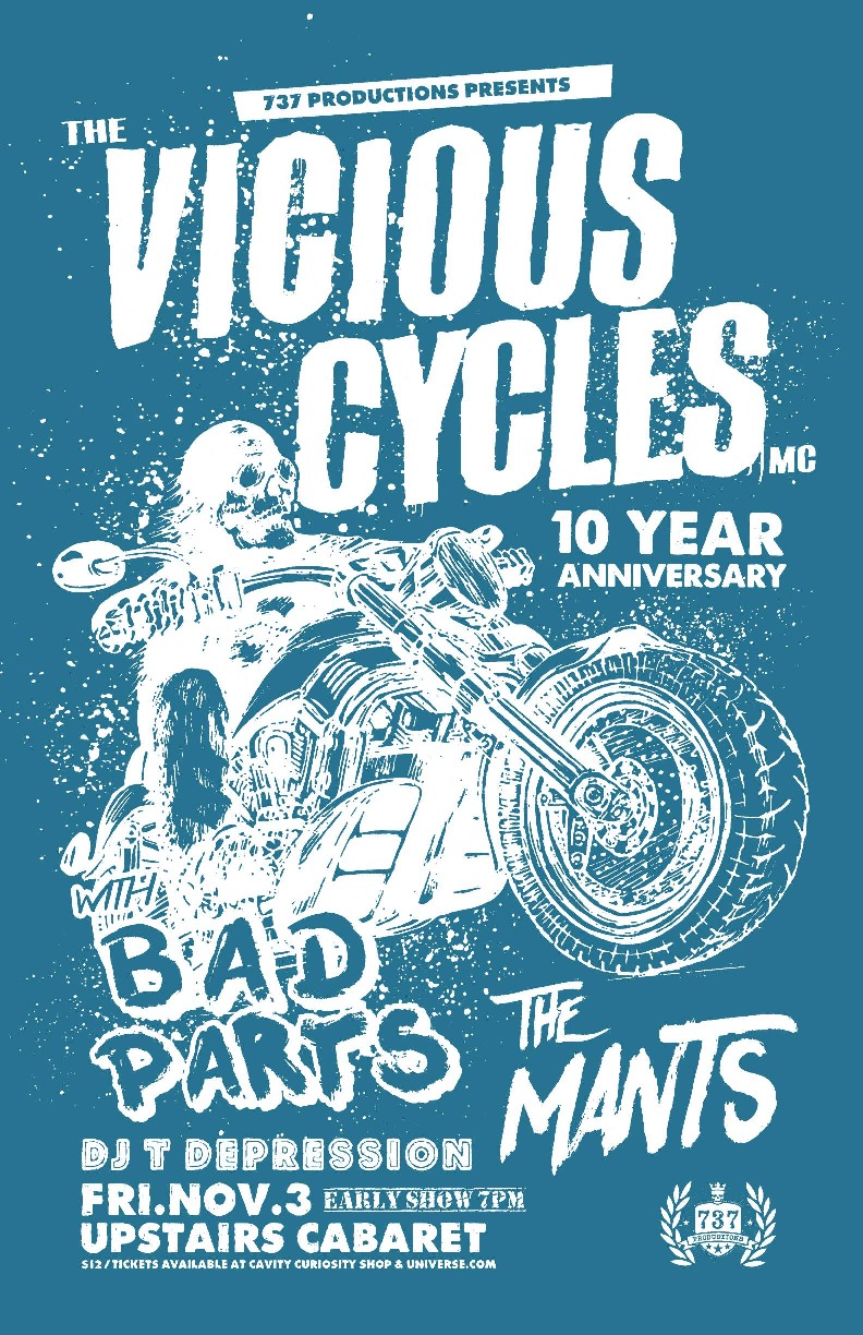 This is an EARLY show. We can all take the Vicious Cycles elsewhere to party afterwards, BUT make sure to show up early. Doors at 7pm, show over by 11pm.
