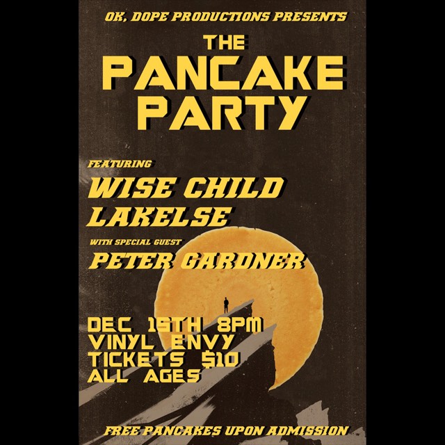 Are you sick of the traditional holiday season? Sick of expressing yourself through itchy, tacky holiday sweaters? Need relief from the relentless commercial tide of the holiday music? If so, then OK, DOPE Productions The Pancake Party is the perfect event for you! Join Wise Child, Lakelse and Peter Gardner (Hawk and Steel/Honey Rose) for a night of music and free pancakes among the wax at Victoria's one and only Vinyl Envy.