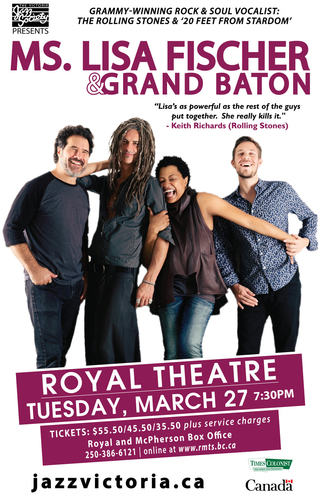 The VJS is thrilled to present Ms. Lisa Fischer & Grand Baton in Victoria again (between a seven night run in Paris and two nights in Tokyo) after their knockout headlining performance at the 2015 TD Victoria International JazzFest.