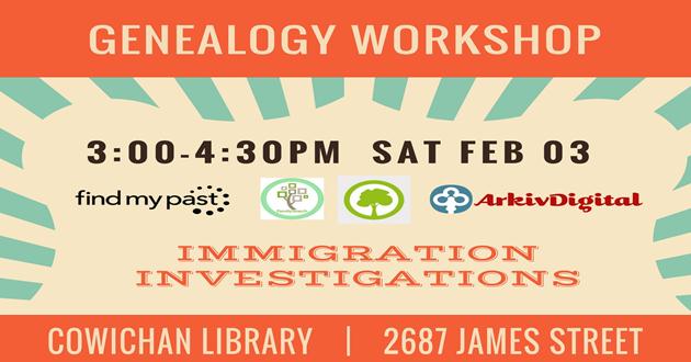 Join us at Cowichan Library for a free genealogy workshop on research into immig...