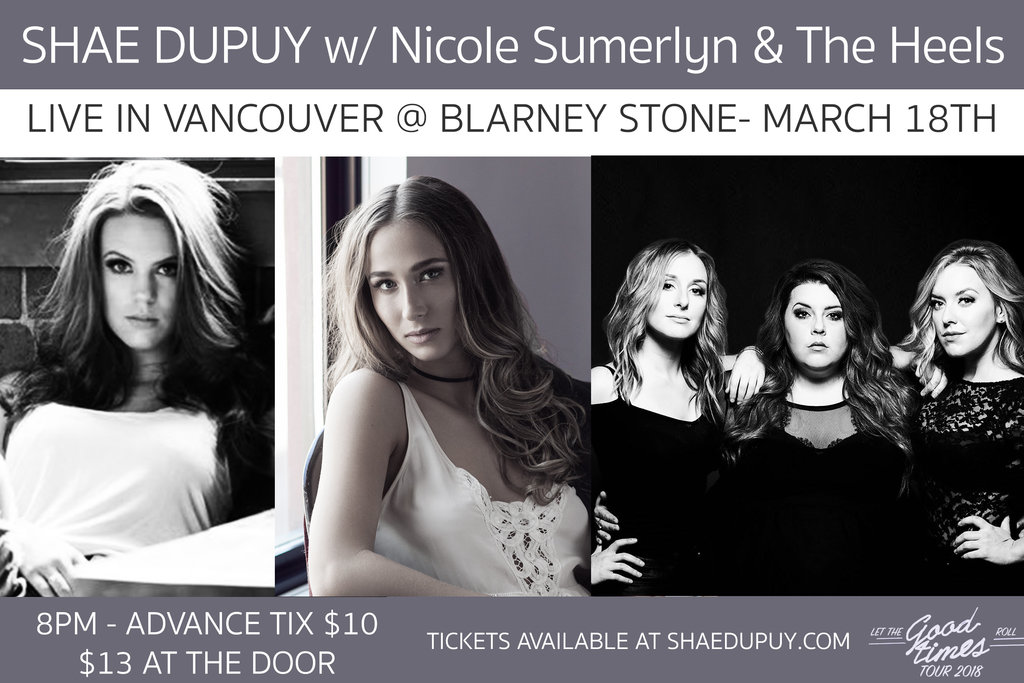 Country artist Shae Dupuy brings her Let The Good Times Roll tour to Vancouver on March 18th for an incredible country lineup, featuring The Heels and Nicole Sumerlyn.