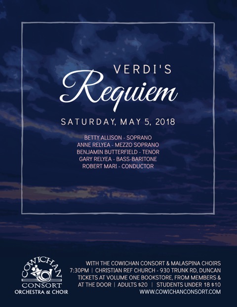 Malaspina Choir and Cowichan Consort join forces to present the great Verdi Requiem.