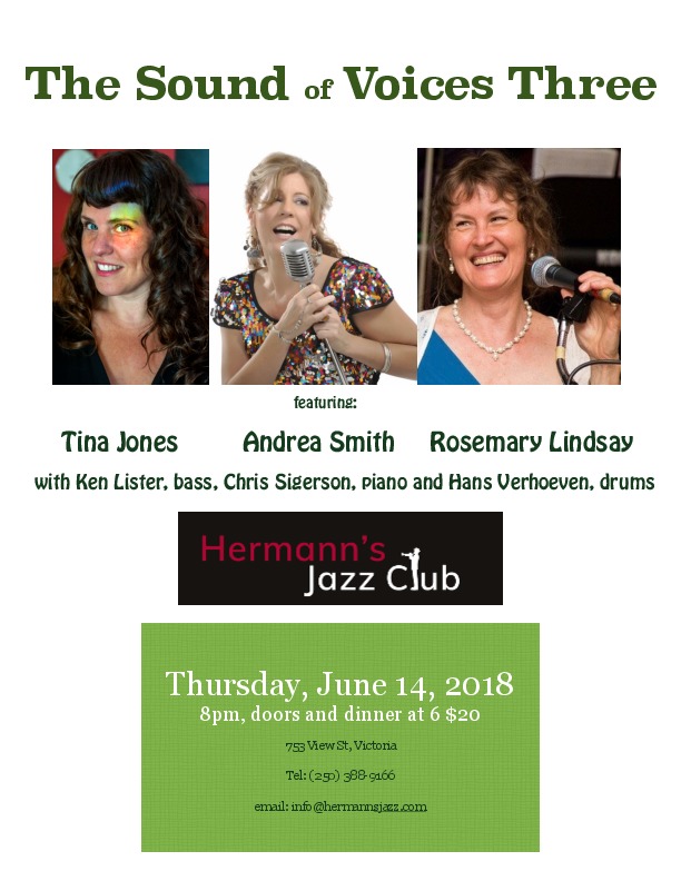 The Sound of Voices Three: Tina Jones , Ken Lister (BASS), Chris Sigerson (Piano), Hans Verhoeven (drums), Andrea Smith, Rosemary Lindsay @ Hermann's Jazz Club Jun 14 2018 - Jan 10th @ Hermann's Jazz Club