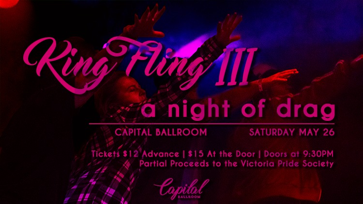 Partial proceeds from the door will be donated to the Victoria Pride Society so come out and support the community while enjoying a night of fantastic performances and have a blast dancing with your friends! The King Fling team and Capital Ballroom staff are committed to providing a safe and inclusive space for everyone, with zero room for aggression or non-consensual activity. Bathrooms will be gender neutral for the night. If you have any questions or concerns please message us directly and we will be happy to answer!