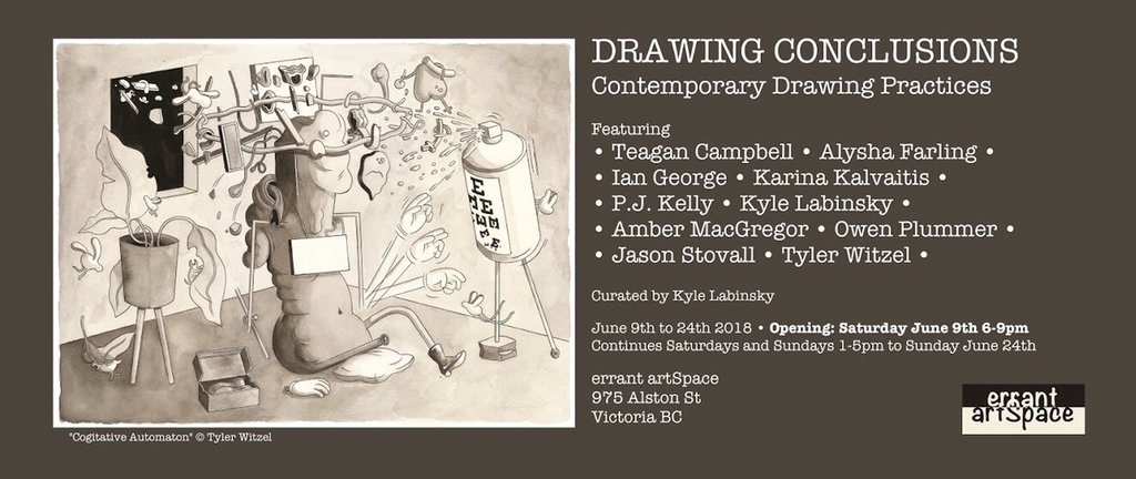 Drawing Conclusions: Teagan Campbell, Alysha Farling, Ian George, Karina Kalvaitis, P.J. Kelly, Kyle Labinsky, Amber MacGregor, Owen Plumber, Jason Stovall, Tyler Witzel @ Errant ArtSpace Jun 9 2018 - Feb 3rd @ Errant ArtSpace