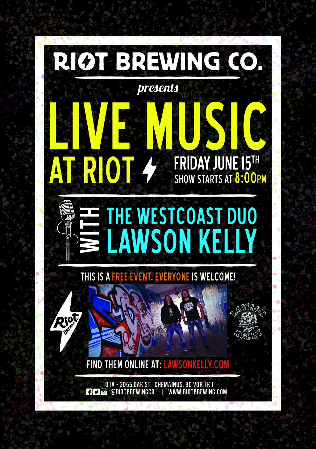 Fri. June 15th 2018 Riot Brewing Co. Chemainus BC Free