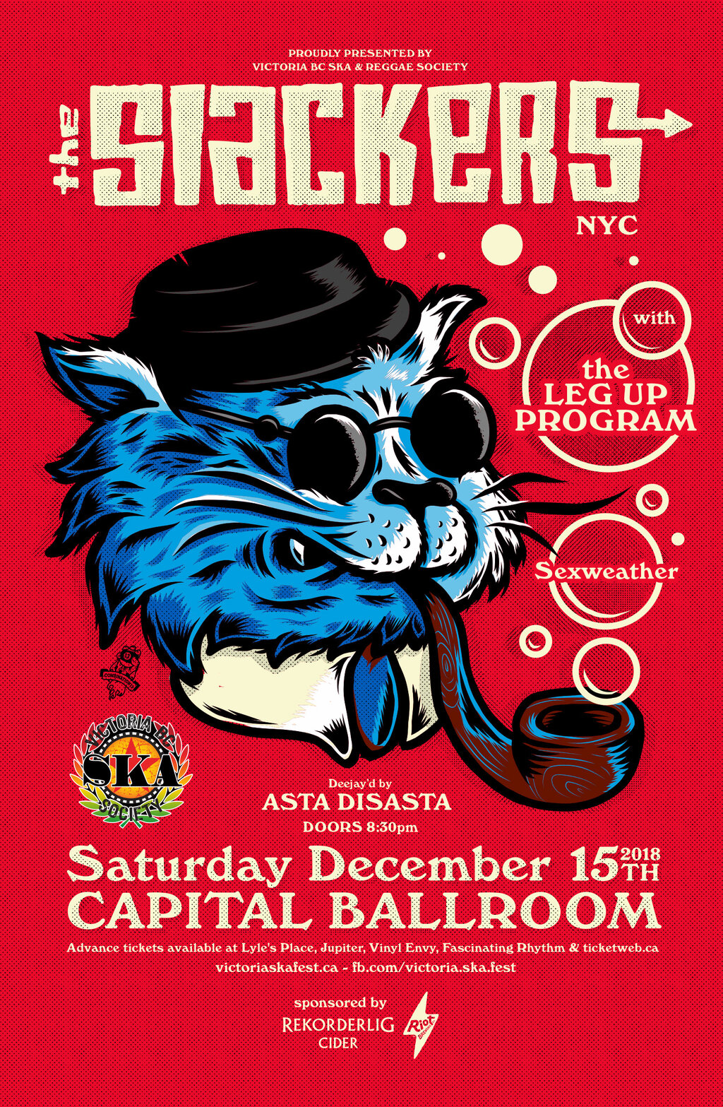 In Victoria the Slackers will be joined by two of Victoria's most exciting bands. The soul-funk behemoth THE LEG-UP PROGRAM and down and dirty power-trio SEXWEATHER.