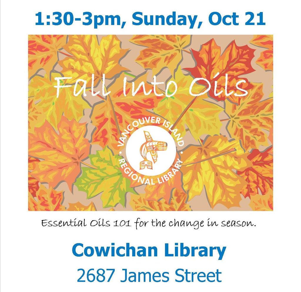 Fall Into Oils: Essential Oils 101 for the change in season @ Vancouver Island Regional Library (Cowichan Branch) Oct 21 2018 - Dec 14th @ Vancouver Island Regional Library (Cowichan Branch)