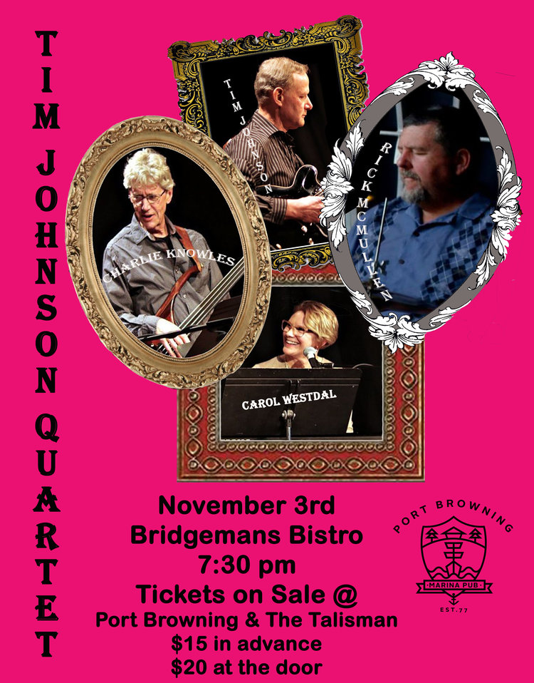 Tim Johnson guitar, Carol Westdal piano, Charlie Knowles bass, Rick McMullen drums. Original jazz, non-standards and tasteful interpretations of an eclectic collection of wonderful songs.