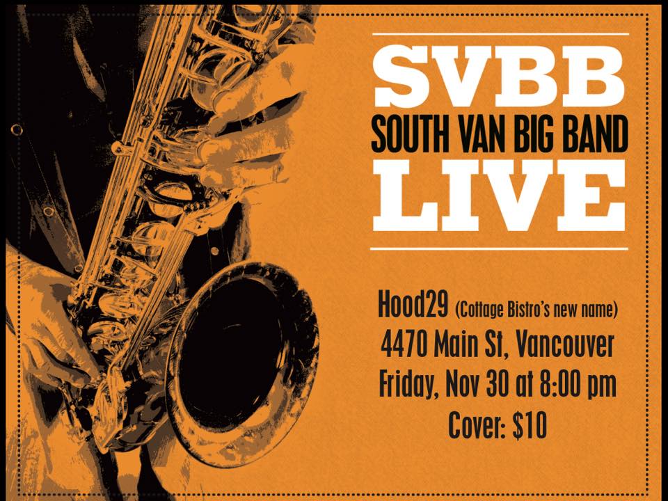 South Van Big Band, Ikuko @ Hood 29 (formerly Cottage Bistro) Nov 30 2018 - Feb 3rd @ Hood 29 (formerly Cottage Bistro)