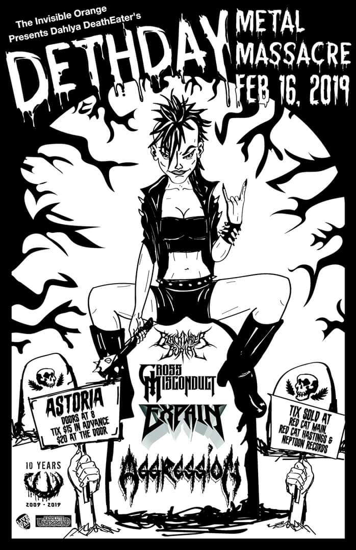 Dahlya's DEATH DAY METAL MASSACRE: Aggression, Gross Misconduct, Blacwater Burial @ The Astoria Feb 16 2019 - Feb 22nd @ The Astoria
