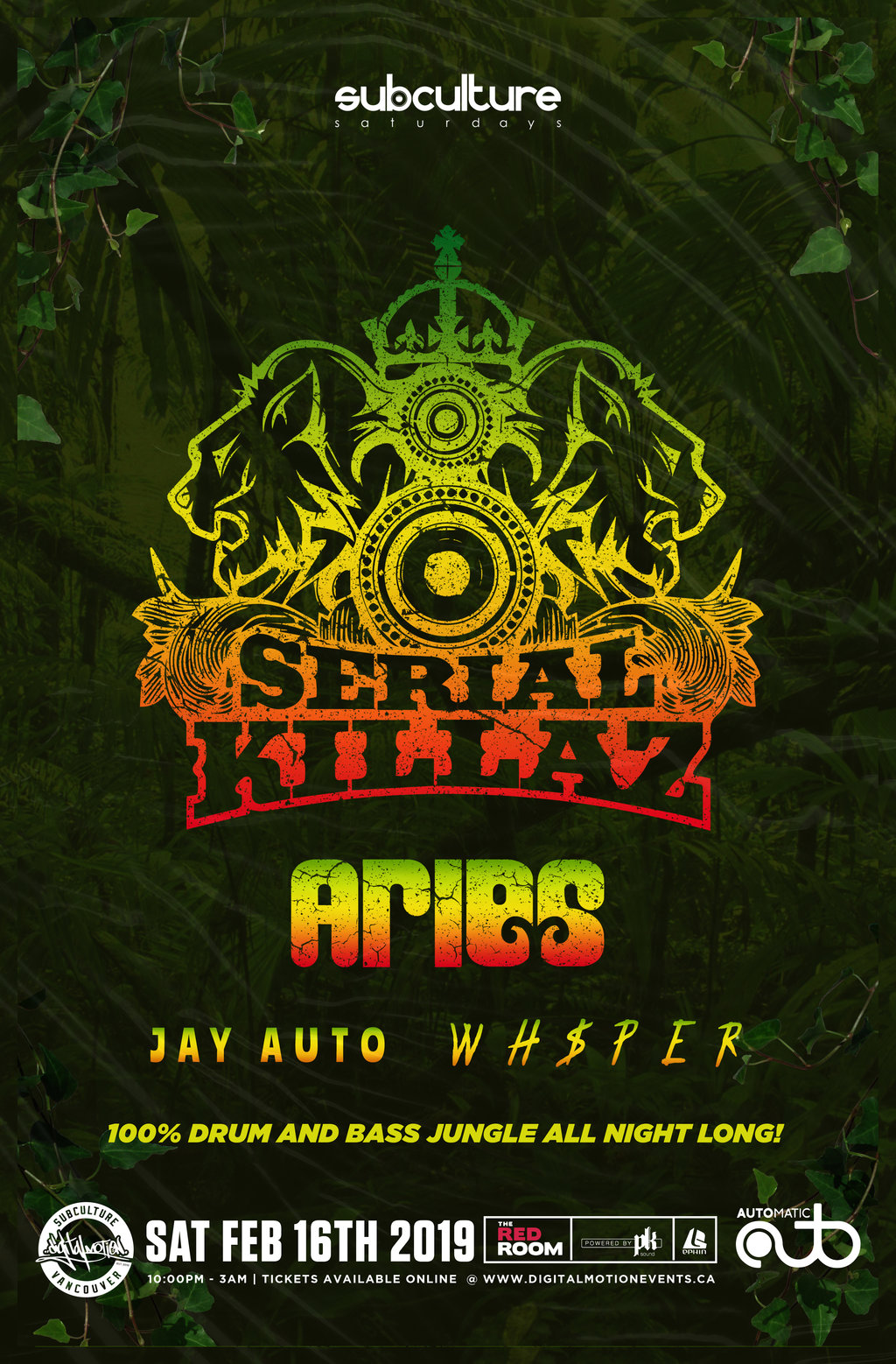100% DnB Jungle: SERIAL KILLAZ, Aries @ The Red Room Feb 16 2019 - Dec 14th @ The Red Room