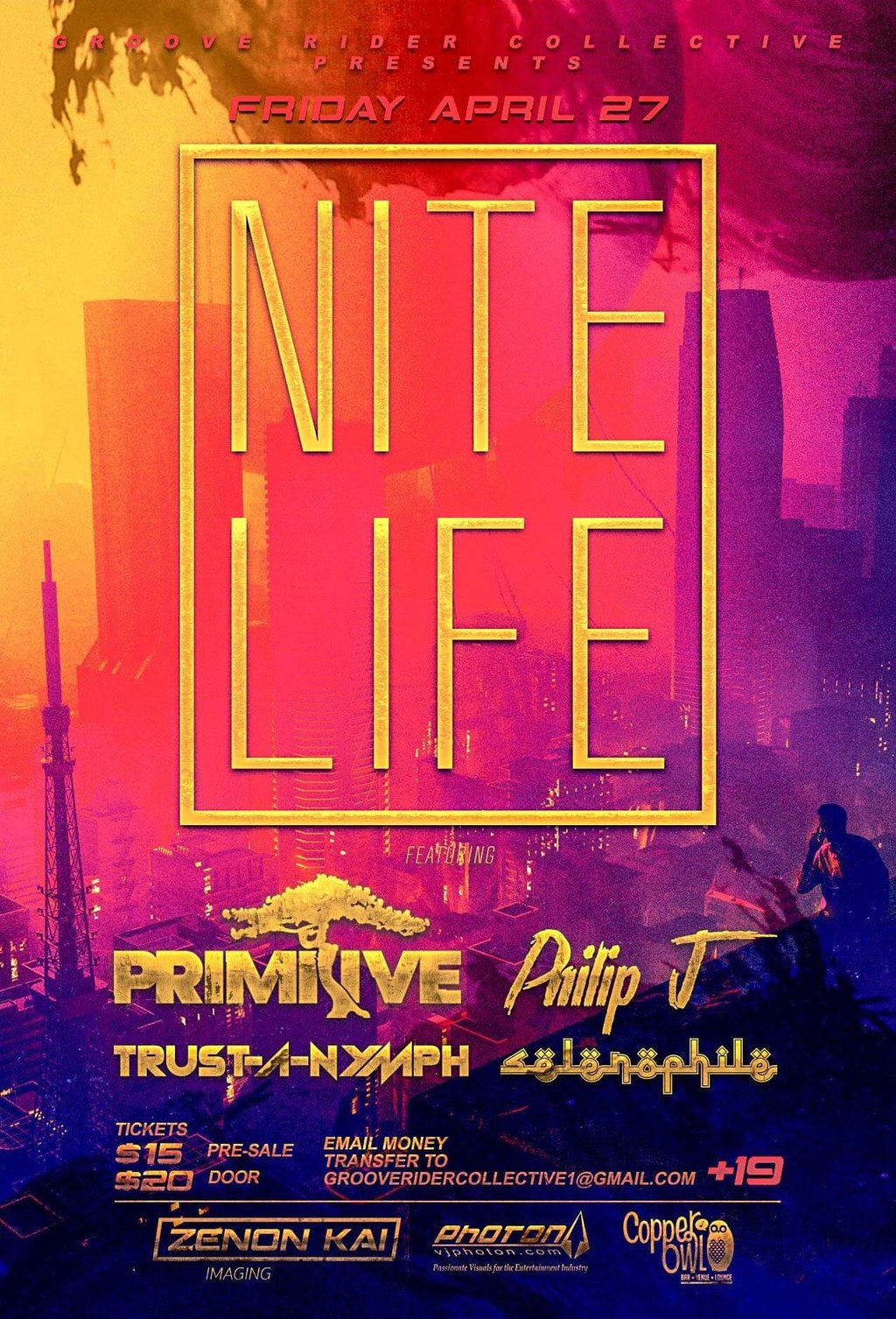 NITE LIFE: Selenophile, TRUST-A-NYMPH, ACRANYMPH, Trust, PhilipJ, Primitive, PHOTON @ Copper Owl Apr 27 2019 - Feb 3rd @ Copper Owl