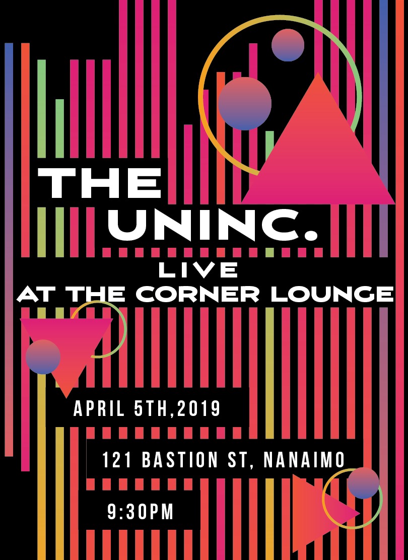 Upcoming young and fresh rock and roll band, The Uninc., are playing live at the Corner Lounge, Nanaimo on April 5th, treating downtown Nanaimo to an evening of raw, original, and timeless rock and roll music.