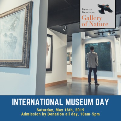 In celebration of International Museum Day, we are opening up the Gallery with admission by donation all day on Saturday, May 19th, 2019. Come and join in the fun! We want to welcome everybody in the local community to participate in International Museum Day and enjoy nature-inspired art.