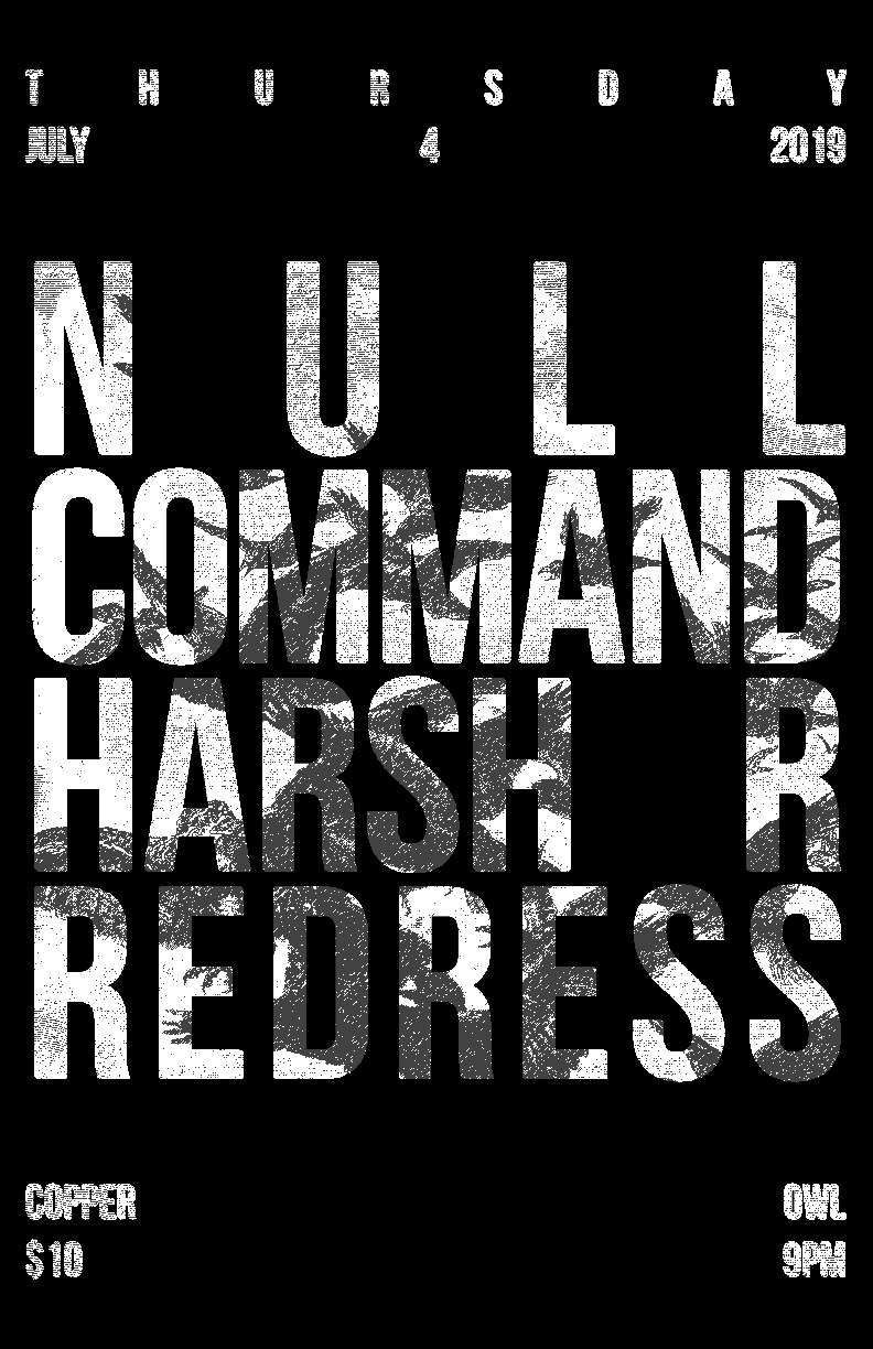 Null Command, Harsh R, Redress @ Copper Owl Jul 4 2019 - Feb 5th @ Copper Owl