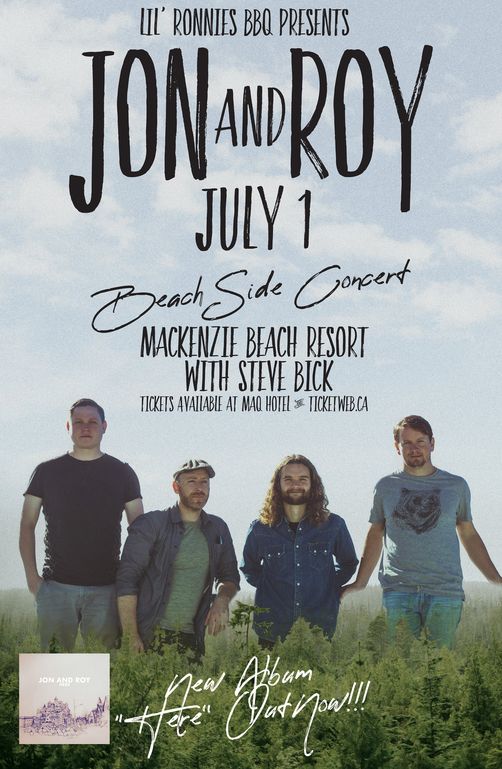 TOFINO - due to issues beyond our control we have had to move our Canada Day concert to the Maq Hotel. We were looking forward to the beach setting, but now is your chance to see as intimate a Jon and Roy show as you’ll get anywhere in the WORLD!!!