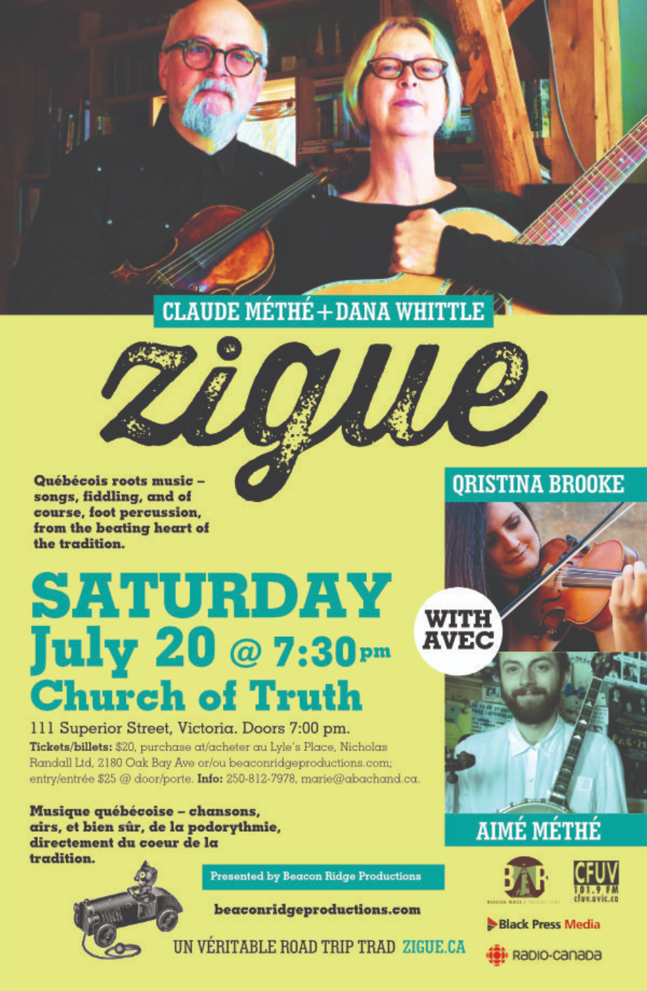 Zigue is an amalgam, a fusion of simple and complementary elements drawn from the contemporary terroir of their imagination. Claude's traditional violin playing and his poignant and authentic songs are supported by Dana's rhythmic guitar and percussive "pieds". As a duo, they bring out their passionate bond and infectious energy, the type of magic found only within a musical family. To make it even more of a family affair, Claude and Dana's son, fiddler Aime Methe, will be joining them on stage.