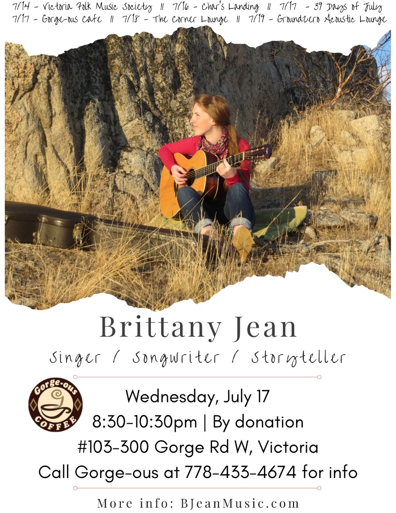 Singer-songwriter: Brittany Jean @ Gorge-ous Coffee Jul 17 2019 - Nov 20th @ Gorge-ous Coffee