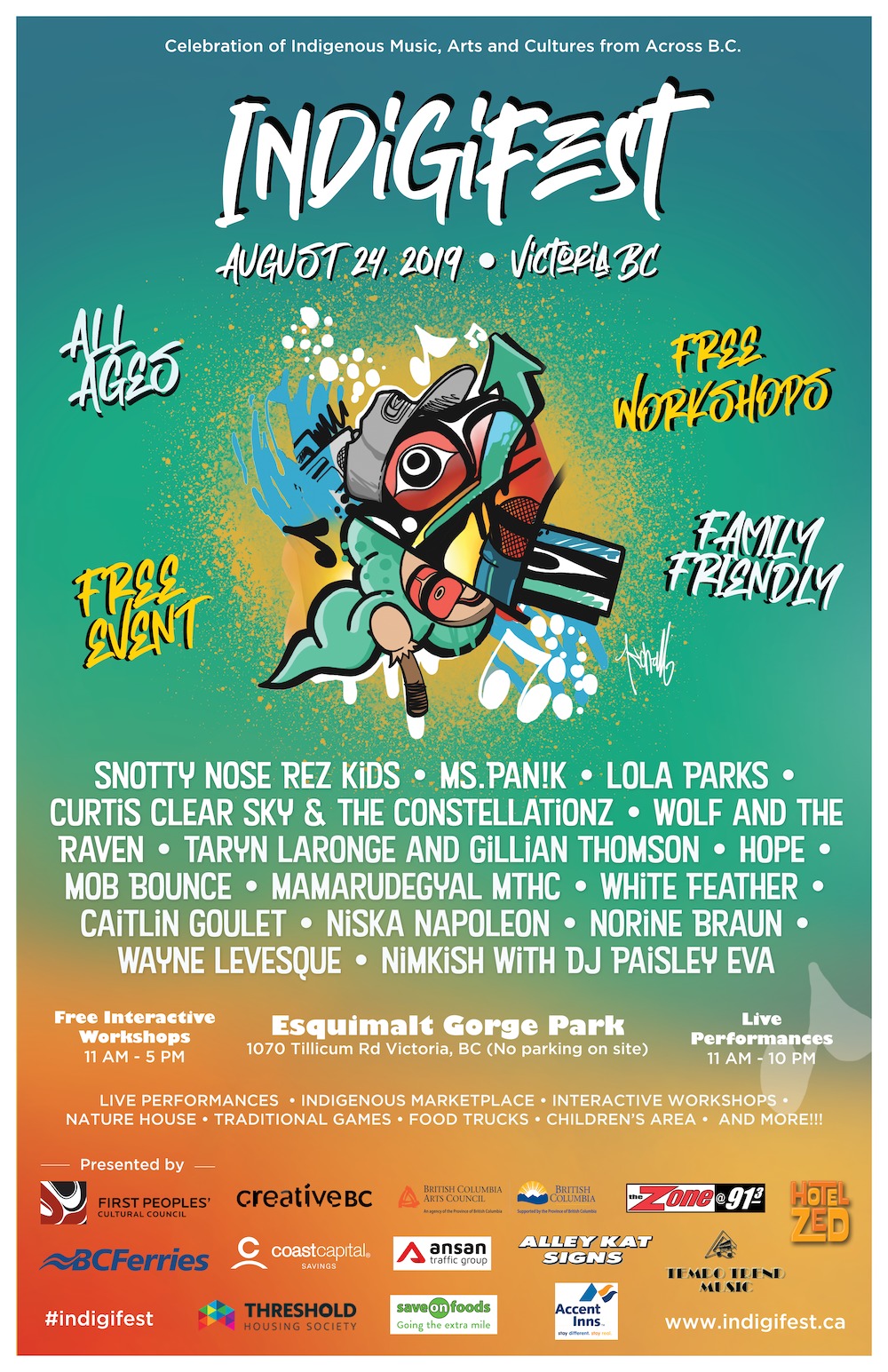 Indigifest: Snotty Nose Rez Kids, Ms. Pan!k , Lola Parks, Curtis Clear Sky and the Constellationz, Wolf and the Raven, Taryn Laronge and Gillian Thomson, Hope, Mob Bounce, Mamarudegayl MTHC, WhytFeather, Caitlin Goulet, Niska Napoleon, Norine Braun, Wayne Levesqe, Nimkish with DJ Paisley Eva