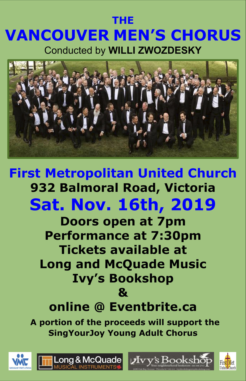 Sat. November 16th 2019 United Commons (First Metropolitan United Church) Victoria BC $30