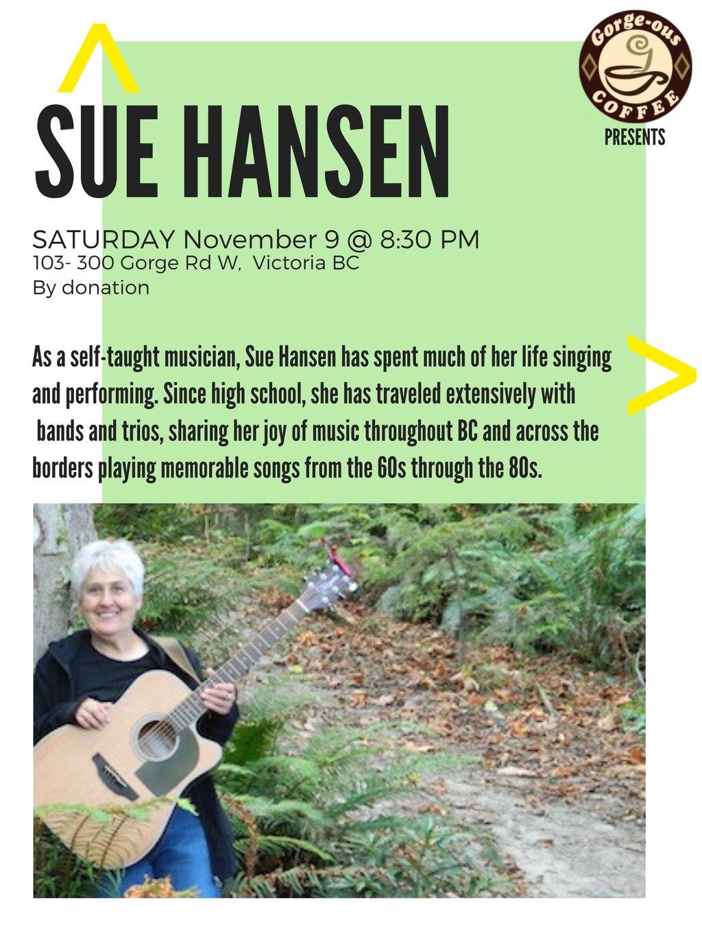 As a self-taught musician, Sue Hansen has spent much of her life singing and performing. Since high school, she has traveled extensively with bands and trios, sharing her joy of music throughout BC and across the borders playing memorable songs from the 60s through the 80s.