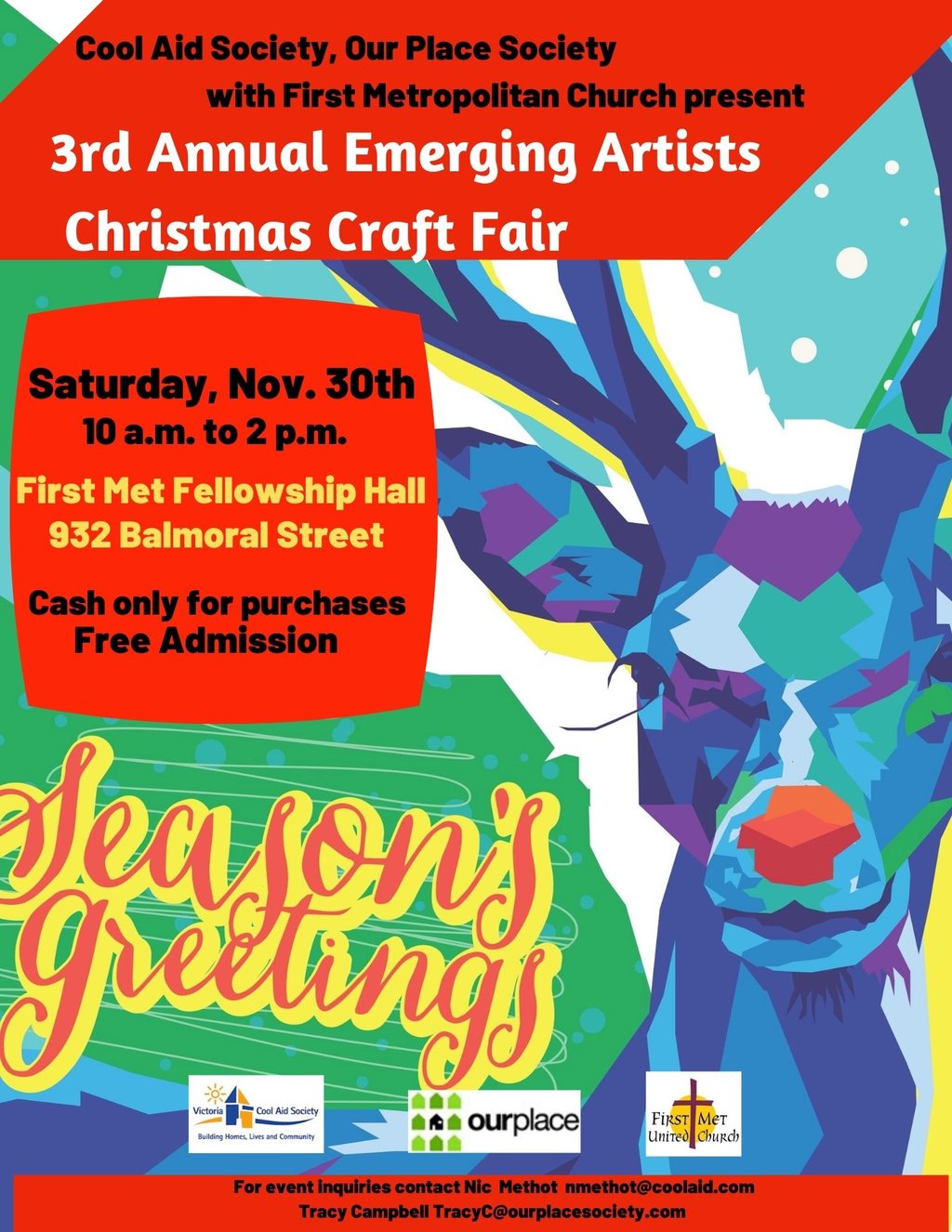 Hosted by Our Place, Cool Aid and First Metropolitan Church, the Fair will highlight the talents of over 45 low-income and emerging artists, for whom the event will be the first opportunity they have to sell their creations to the general public. Admission is free. Cash-only sales. Raffle and refreshments by donation.