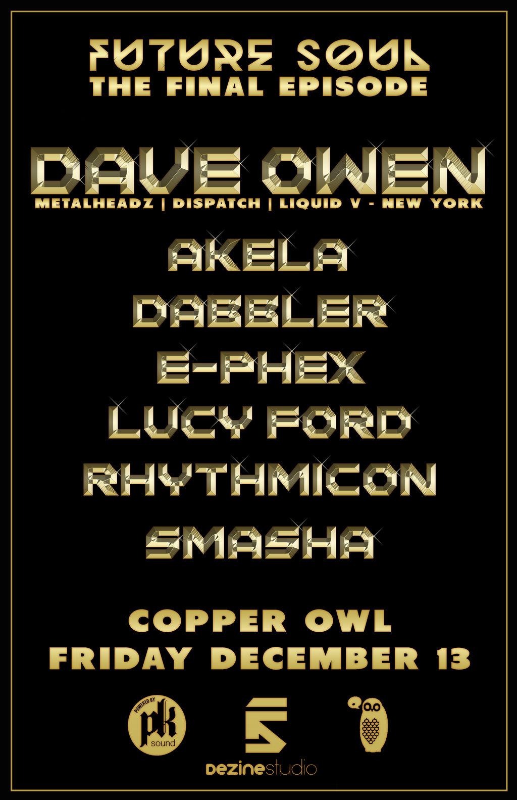 Future Soul Finale featuring: Dave Owen, AKELA , Dabbler, E-Phex, Lucy Ford, Rhythmicon, SmaSha @ Copper Owl Dec 13 2019 - Feb 18th @ Copper Owl