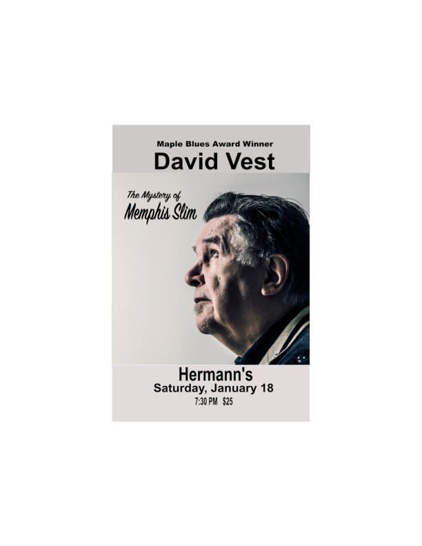David Vest, a five-time piano player of the year at the Maple Blues Awards, considers Memphis Slim to be the greatest of all the blues piano players (as well as a great singer and songwriter). David is of course known nearly as much for the stories he uncovers as for his own playing and singing, and he’s a songwriter of the year nominee for his own work.