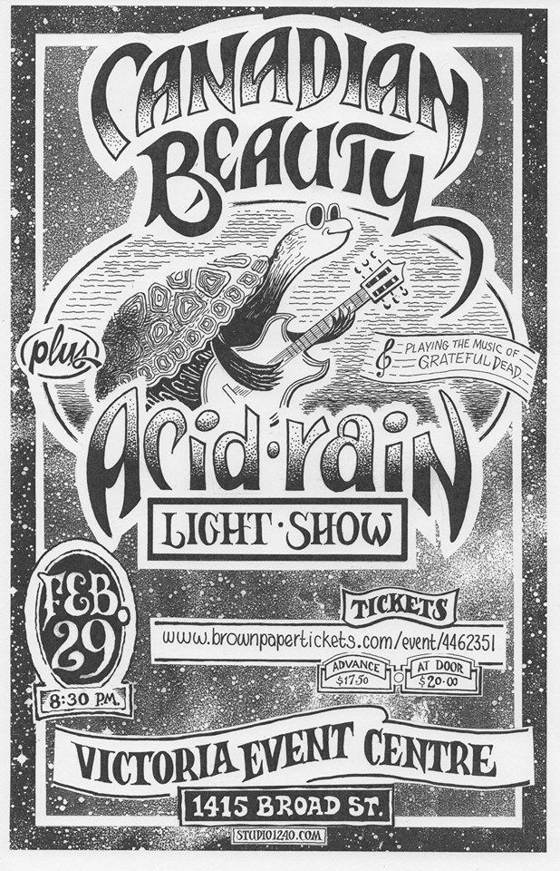 On Saturday, February 29, 2020, we are going to reprise our September 29, 2018 event. Canadian Beauty (Victoria's premier jam band) will cruise deep into the Grateful Dead's catalog while Acid Rain Light Show (all analogue, 60's style visual presenters) paint the surrounding walls. Gonna be a long, long, crazy, crazy night.