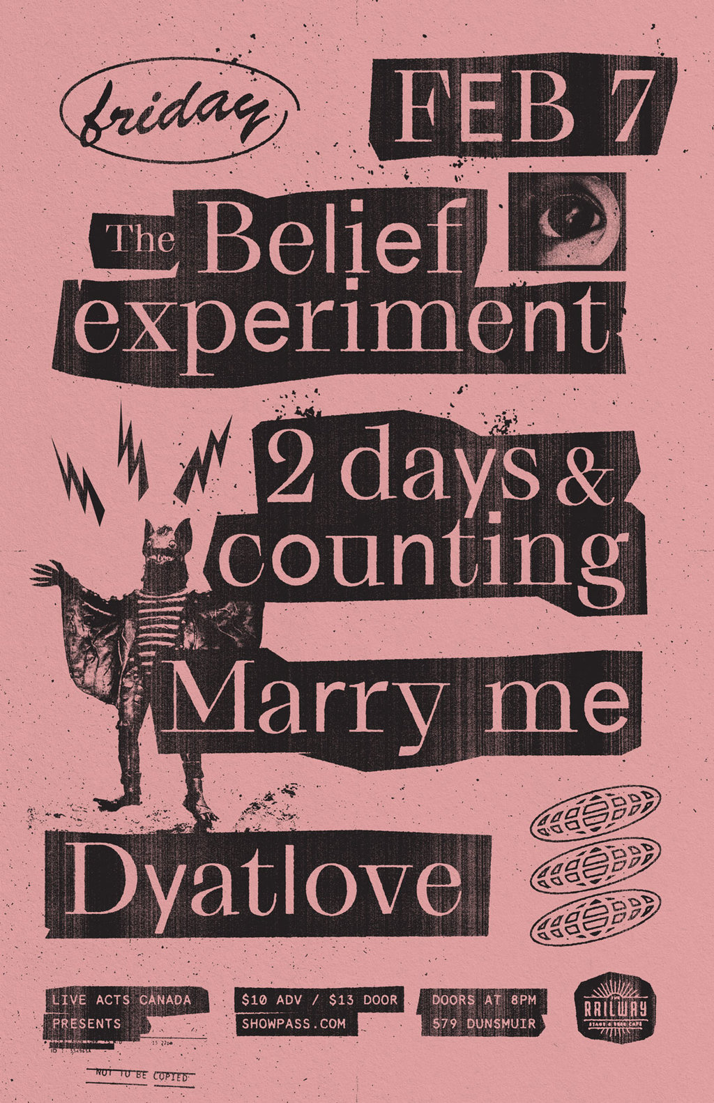 The Belief Experiment, 2 Days and Counting, Marry Me, Dyatlove @ Railway Club Feb 7 2020 - Feb 5th @ Railway Club