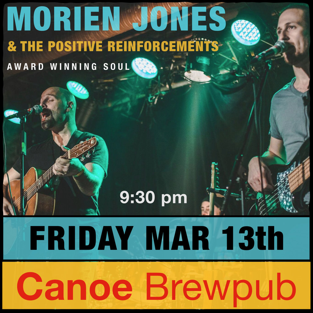 Morien Jones and the Positive Reinforcements will be taking Canoe Club by funky soulful storm on Friday March 13th. The band will be laying down funky dancy grooves and cranking out soulful anthems to sing along with all night long. No cover!