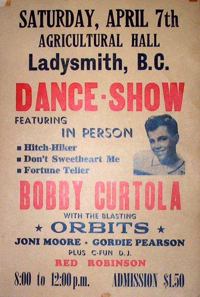 Dance & Show with Bobby Curtola: Bobby Curtola, The Orbits, Joni Moore, Gordie Pearson @ Ladysmith Agricultural Hall Apr 7 1962 - Jan 11th @ Ladysmith Agricultural Hall