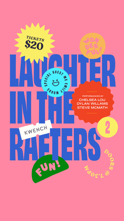 Chelsea Lou! Dylan Williams! Emily Woods! Steve McMath! If you’re not laughing already, there’s still hope for you. Come get your laugh on with these It comedians at KWENCH’s Laughter in the Rafters II .