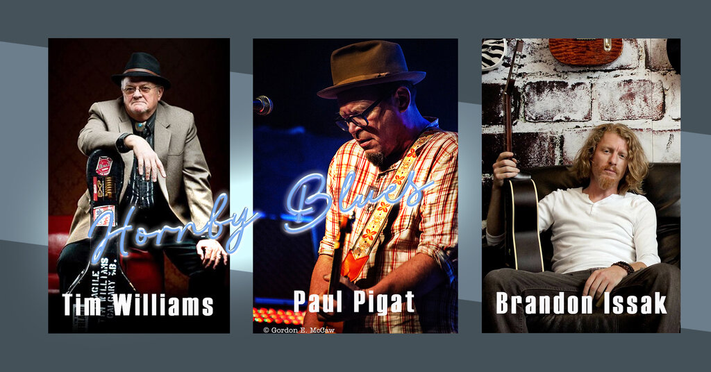 4th Annual Hornby Blues: Tim Williams, Paul Pigat, Brandon Isaak @ Mel Lehan Hall at the St. James Community Square Apr 28 2022 - Jan 8th @ Mel Lehan Hall at the St. James Community Square
