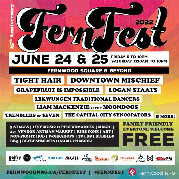 This event has been organized for 25 years by your local neighbourhood organization, Fernwood NRG. Fernwood NRG operates the Fernwood Community Centre, runs the Good Food Box and Gift of Good Food program, operates 105 child care spaces and 10 units of affordable housing, hosts a weekly Monday evening community meal and Friday afternoon seniors’ lunch, family, seniors, and youth programs, a Community Orchard, and Kitchen Garden, and much more! We are so excited and grateful to be able to bring our community together again to celebrate and have a good time.
