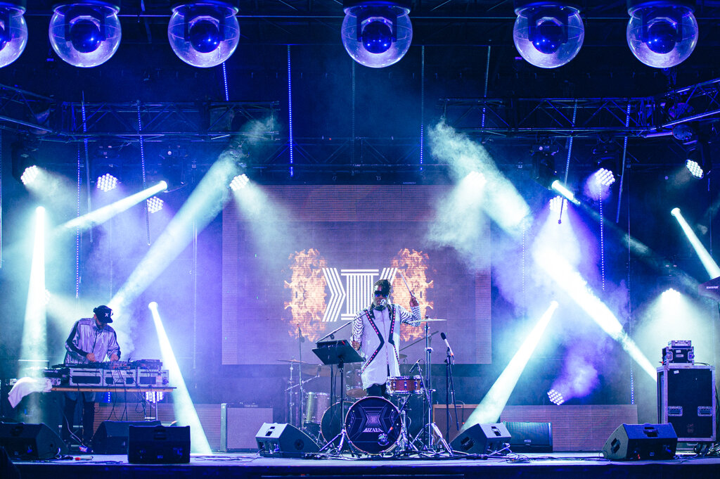 The Kizaba show offers a musically rich style reminiscent of the Congo and is a futuristic Afro journey “Fumu na betu”, for which he creates vocalizations inspired by his ancestors and mixes sounds of soukous-Congolese, Afrobeat and Pop rock. On stage, he uses his vocals, drums, and percussion by mixing electronic music and traditional sounds from the Congo to create an Afro-Futurist world.