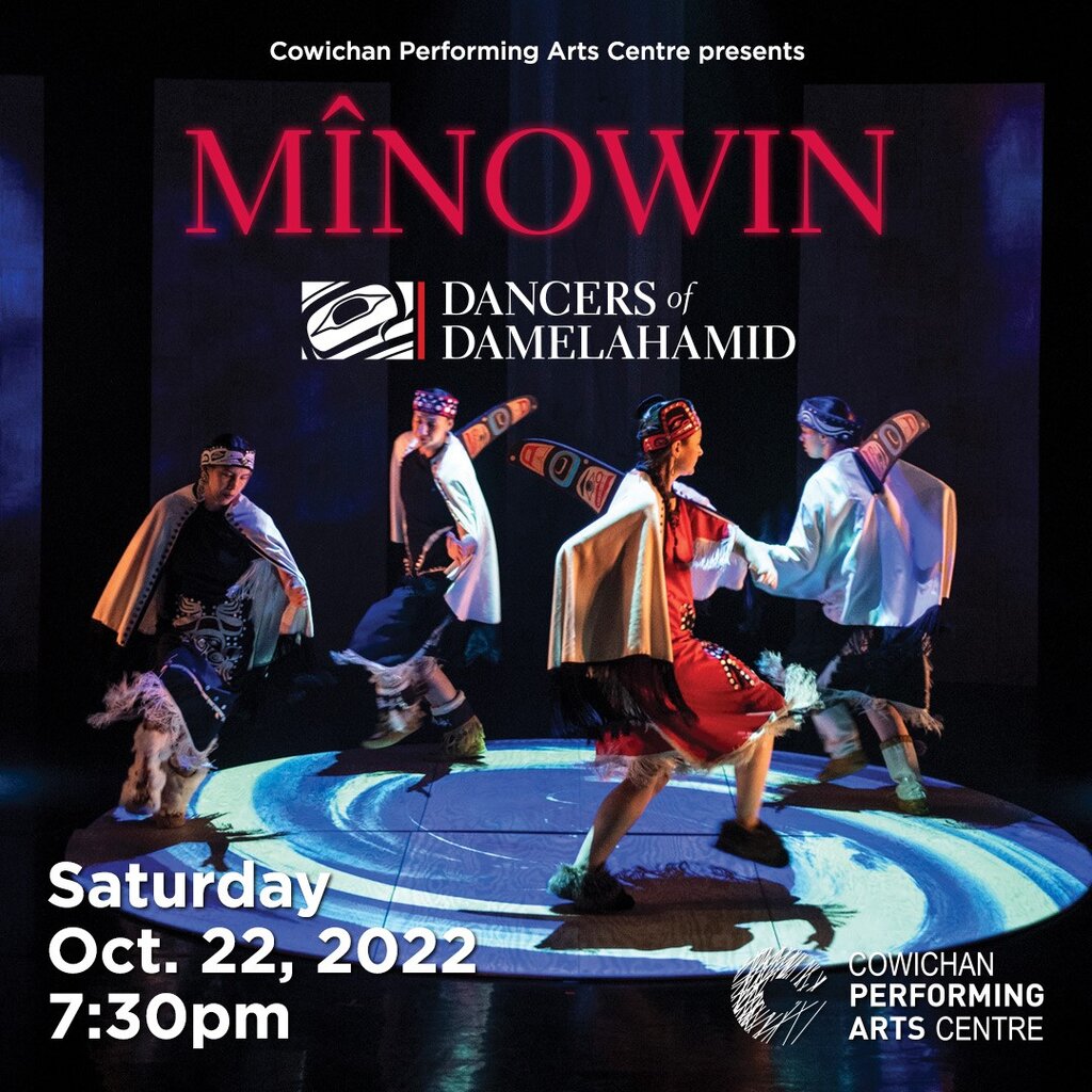 The Cowichan Performing Arts Centre is proud to present Dancers of Damelahamid's Mînowin on Saturday, October 22 at 7:30pm. Mînowin illuminates the process of finding direction and explores understandings of organic moments that arise when we connect with one another. These connections breathe new life into our artistic practices and offer critical inquiries with performance spaces.
