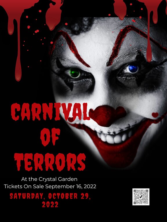 This Halloween Passion and Performance Arts Inc. is bringing you into our Carnival of Terrors, an immersive horror experience. Join us on October 29th at the Crystal Garden for this terrifying event.