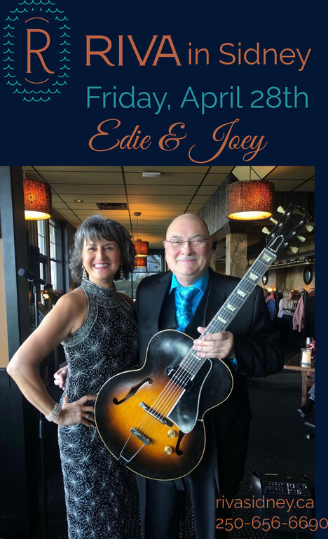 Riva offers a west coast, oceanfront dining experience in Sidney with seascape views and seasonal menus. On April 28th their live music program features singer, Edie Daponte and guitarist, Joey Smith.