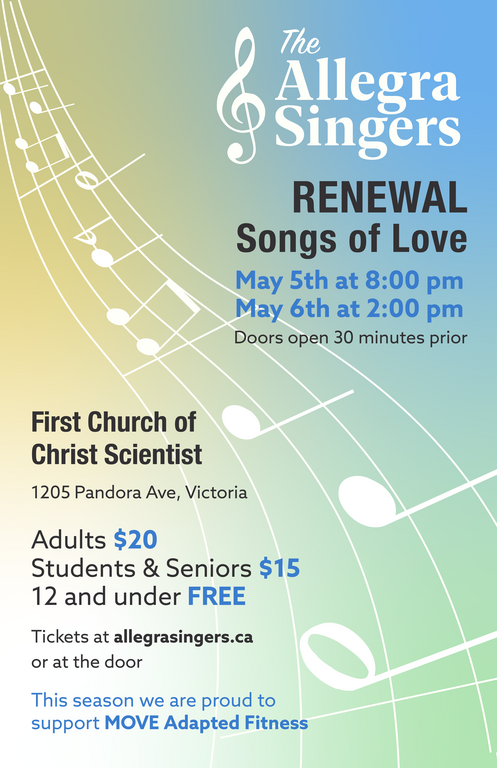 Fri. May 5th 2023 First Church of Christ, Scientist Victoria BC $12-$20