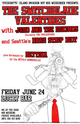ISLAND INVASION HOT ROD WEEKEND!!!: The Stitchblade Valentines, Juho and the Eskimos, Dragstrip Riot, Bettina BettiLu @ Lucky Bar Jun 24 2005 - Feb 3rd @ Lucky Bar