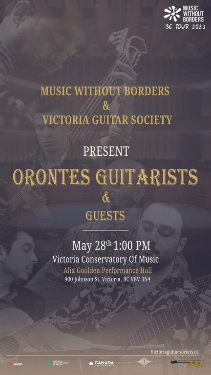 Victoria Guitar Society is proud to present an incredible concert event in partnership with Music Without Borders - Orontes Guitarists & Guests. The concert, set to take place on May 28, will feature an evening of heartwarming and soulful guitar music in support of the victims of the devastating earthquake in Syria.