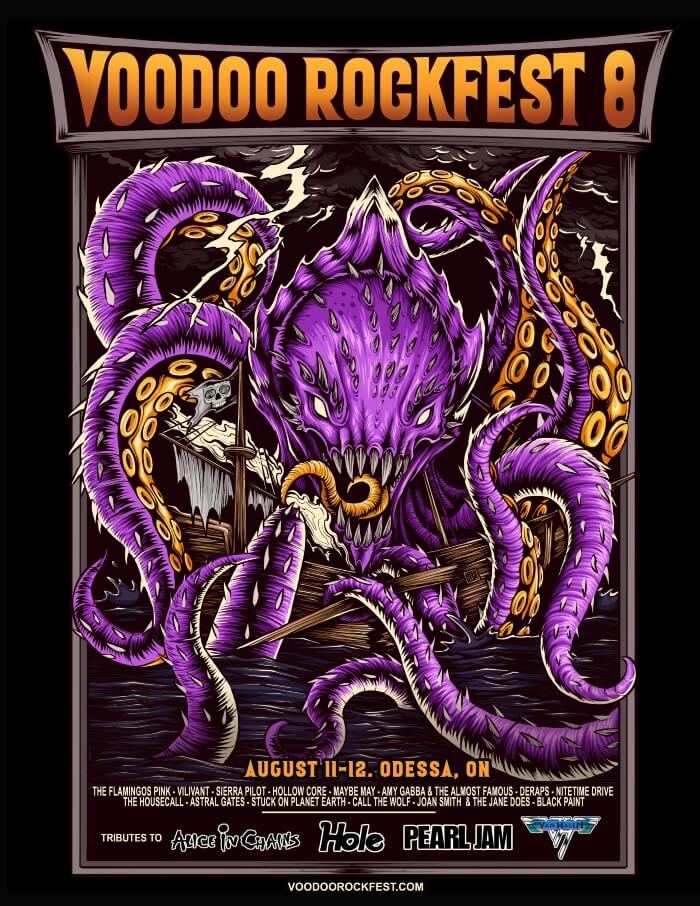 Voodoo Rockfest returns August 11-12, 2023! Get ready for an action packed weekend of great tribute acts and amazing original indie rock bands that never disappoint. You will also find fantastic food trucks, camping, ATM, a merch tent and VIP pool access (limited) tickets at this year's festival.