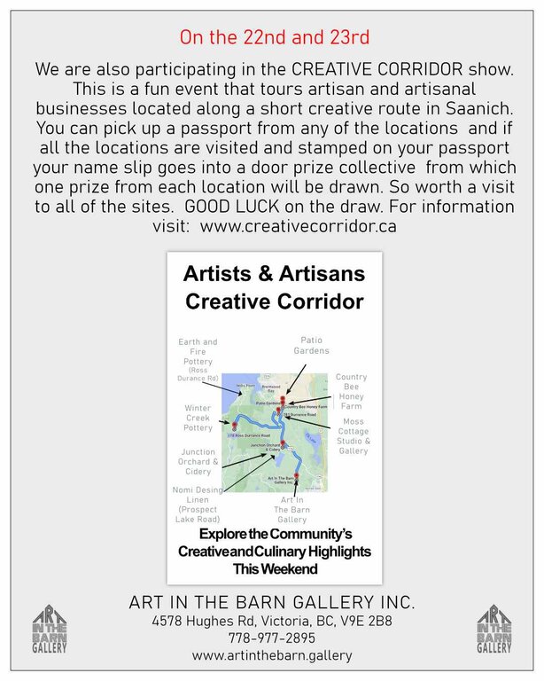 Sat. July 22nd 2023 Art In The Barn Gallery Victoria BC Free