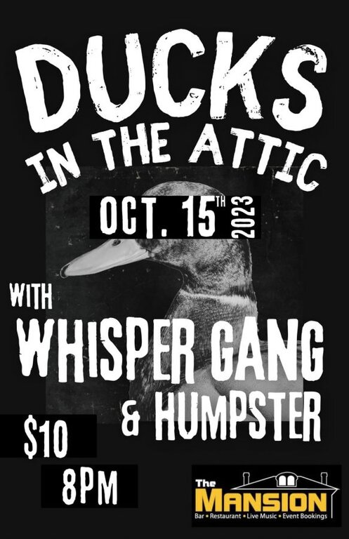 Ducks in the Attic, Whisper Gang, Humpster @ The Mansion Oct 15 2023 - Jan 10th @ The Mansion