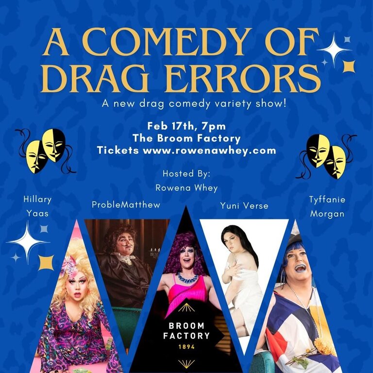 This debut show features Rowena Whey, Tyffanie Morgan, Yuni Verse, ProbleMatthew, and special guest Hillary Yaas, award winning comedy podcast host, and runner up on drag reality show Camp Wannakiki!