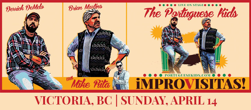 The Portuguese Kids are FINALLY back in Victoria with their brand new show, iMPROVISITAS! You help write the show as Brian & Derrick perform “Whose Line Is It, Anyway?” – style Improv comedy with their unique ethnic twist! Joining them on stage will be Toronto comedian, Mike Rita! This event promises to bring non-stop laughter as these talented comedians take the stage. Whether you’re Portuguese or not, you’re guaranteed to have a fantastic time! Grab your amigos, familia, and loved ones for a night filled with laughter, joy, and good vibes!